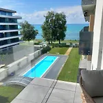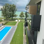 El Sol Balaton Apartamento está situado en una zona de playa de Siófok y ofrece piscina exterior, a tan solo 8 minutos a pie de Galerius Spa. Uno de los aspectos más destacados del apartamento de 54 m^2 es su terraza, desde la cual los huéspedes pueden contemplar las vistas a la piscina.